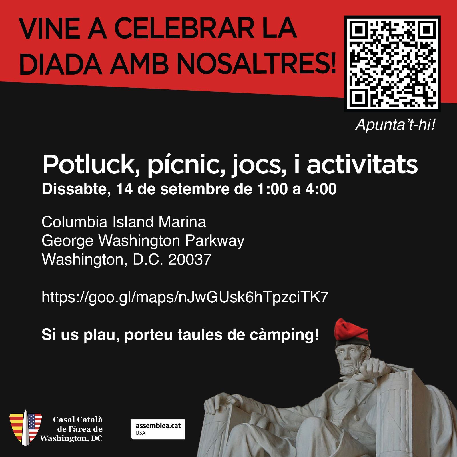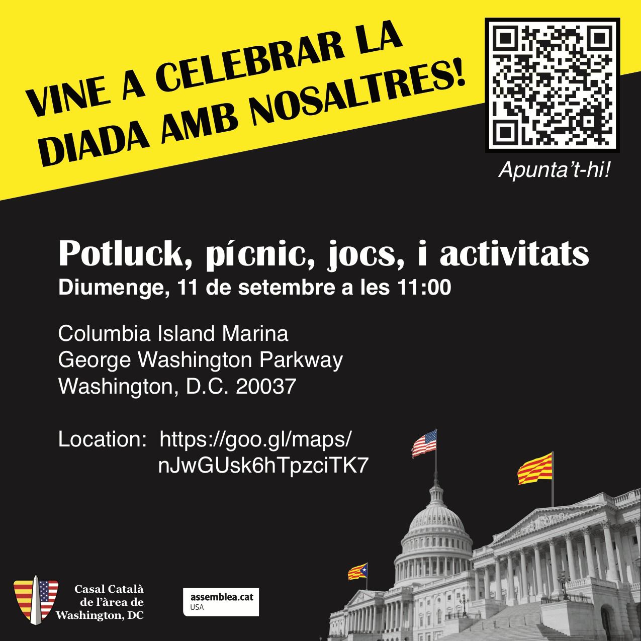 (Celebra la Diada Nacional de Catalunya amb la ANC USA i un objectiu en ment: la independència! Celebrate Catalan National Day with your friends at ANC USA and an objective in mind: Independence!)