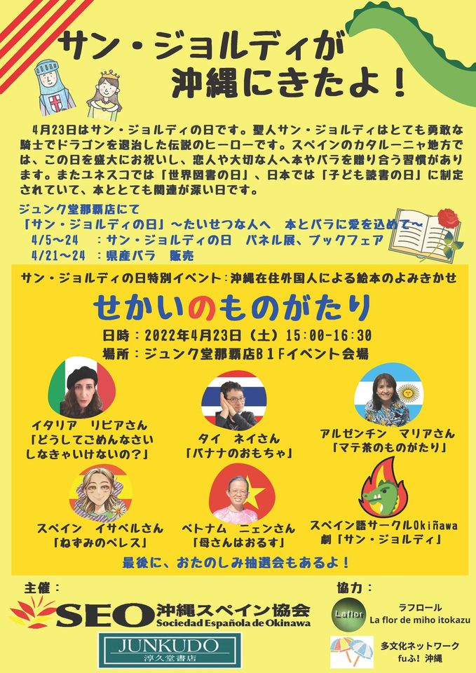 (Sant Jordi a Andorra la Vella! Sant Jordi també es celebra a Andorra amb una fira el dia 23 d’abril a la plaça de la Rotonda d’Andorra la Vella, amb llibres, roses i obsequis per als lectors més petits.)