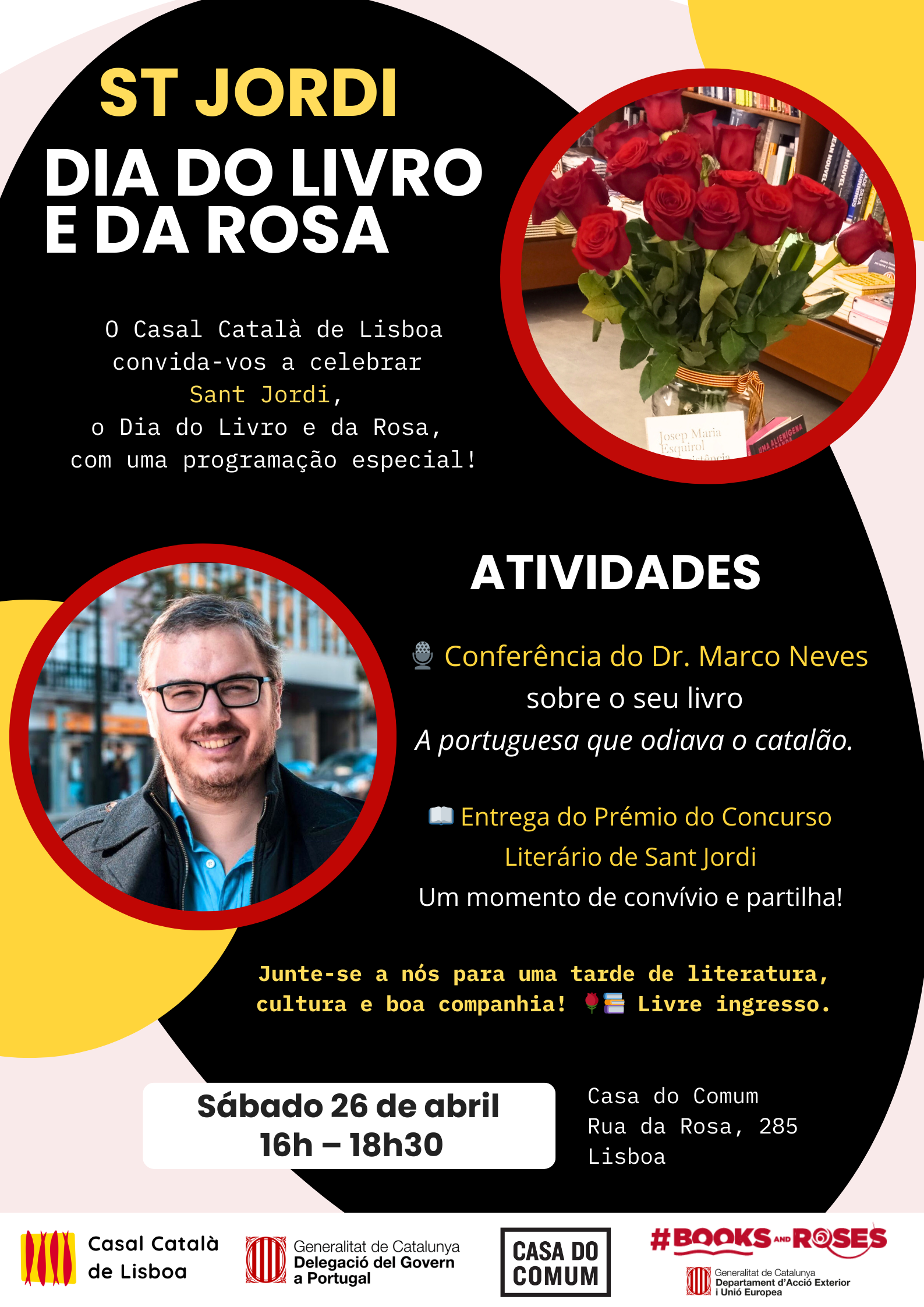 (Us convidem a celebrar la Diada d'enguany amb el Casal Català de Lisboa i la Delegació del Govern de Catalunya a Portugal. Ens agradaria molt que vinguessiu. Será un acte cultural amenitzat amb cava i pica-pica de productes catalans. Agraïm que ens confirmeu l'assistència enviant un mail a l'adreça casalcataladelisboa@gmail.com Us hi esperem!)
